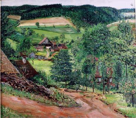 Sommerliche Mittelgebirgslandschaft mit Dorf