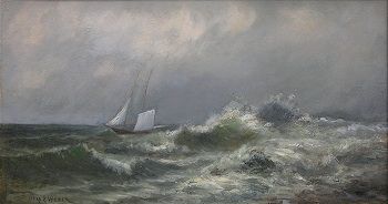 A sailboat in a stormy sea