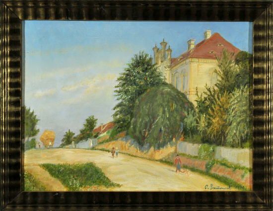 Sonniger Tag in einer Parkanlage hinter einem Herrenhaus
