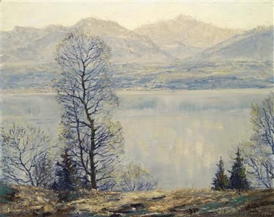 Early Spring on Lake Geneva, Morges, View of Mont Blanc