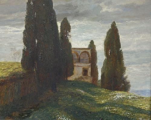 Pejzaż z cyprysami