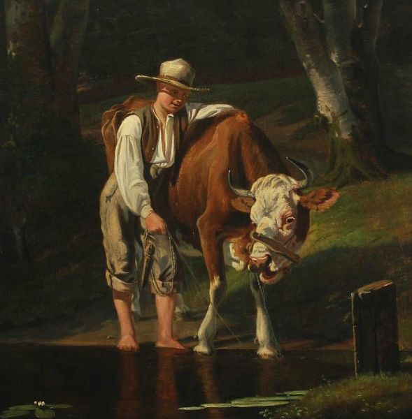 A cow being watered