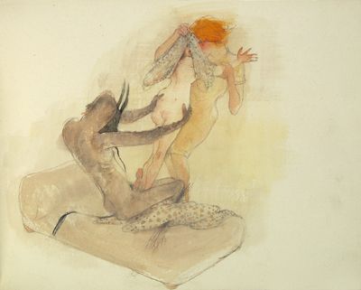 Pen ink and watercolour on paper