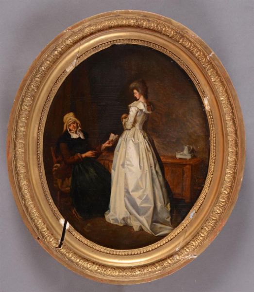 | PAIR OF INTERIOR SCENES WITH ELEGENTLY DRESSED LADIES | |
