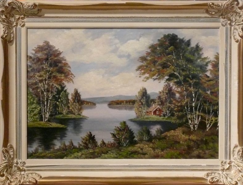 Landskap med stuga