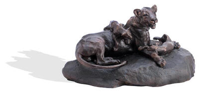 A bronze group of a Lioness and two cubs, on a naturalistic base inscribed 'Llewellyn, 11/12', 85cm wide, 43cm deep, 47cm high (33in wide, 16 1/2in deep, 18 1/2in high) | |