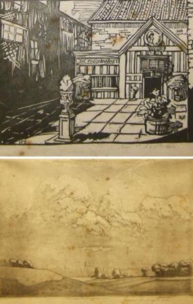 Watercolor FOUR VARIOUS MEDIUM PRINTS AND A WATERCOLOUR