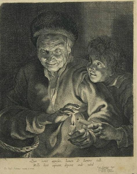 | Woman and boy holding candle. Inscribed in the print Pet | |