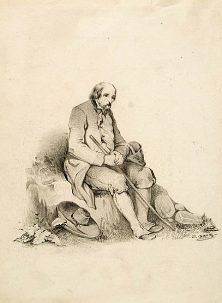 MĘŻCZYZNA SIEDZĄCY NA KAMIENIU, ok. 1820-30
