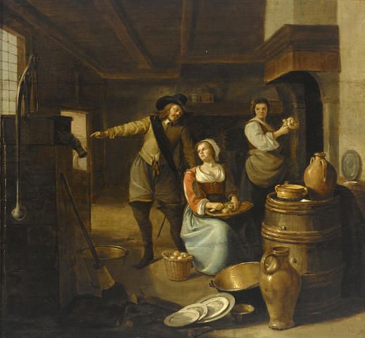 A kitchen interior with figures