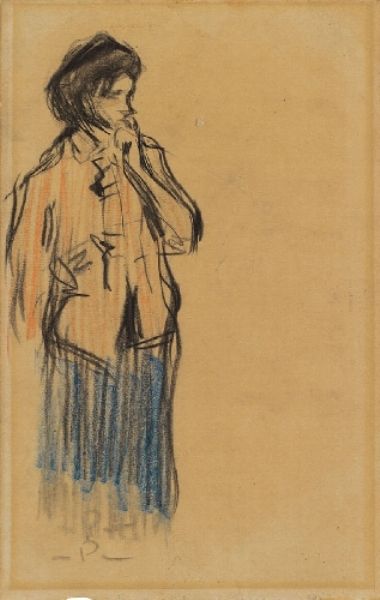 FEMME PENSIVE REGARDANT VERS SA GAUCHE
