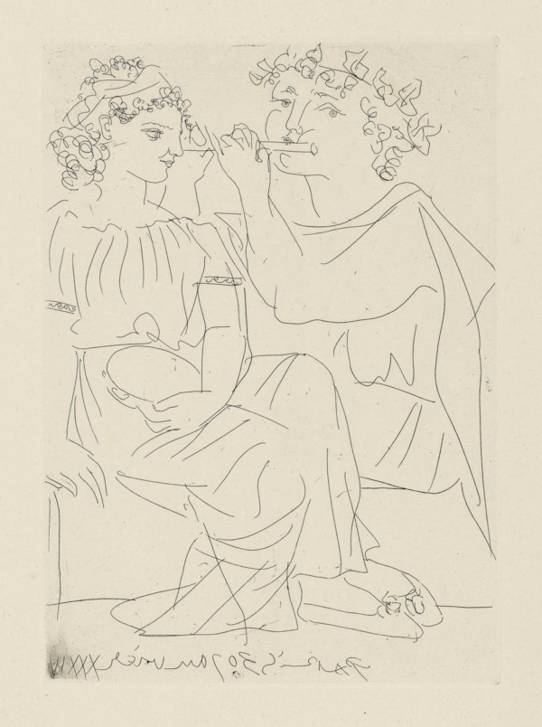| Flûtiste et jeune fille au tambourin, from: La Suite Vollard | |