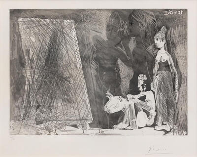 | Peintre devant sa Toile, avec un Modèle, pensant à son sujet: Deux Femmes, from Séries 347 (Bloch 1519; Baer 1535.Bb1) | |