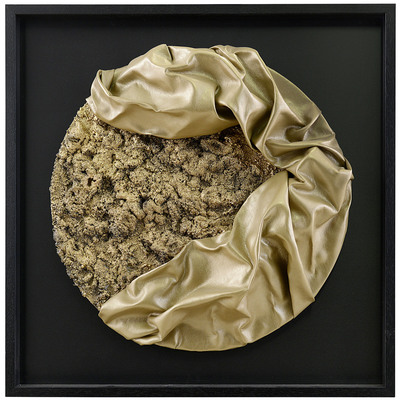 tecnica mista (polimaterico) e applicazioni su tavola circolare Ø 60x15 cm, firma al retro, dichiarazione d'autenticità e archivio dell'artista su foto. | |