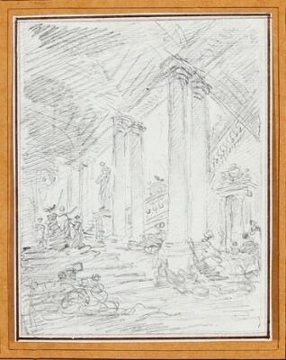 View from a temple and People resting near ruins. Unsigned. Black chalk on paper. Sheet sizes 170×135 mm and 218×262 mm. (2). | |