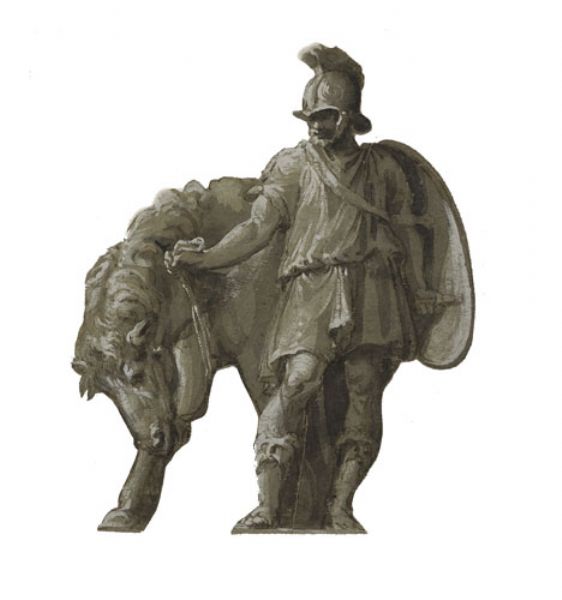 | Brush and dark brown ink with white heightening on green laid paper | |