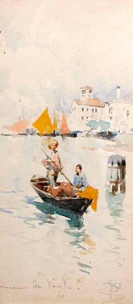 | Venetian canal scene, together with another similar with figures in a gondola, a pair | |