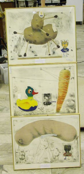| Potatis (Ryttare). "Fläskkorv II" samt komposition med morot samt badanka. | |