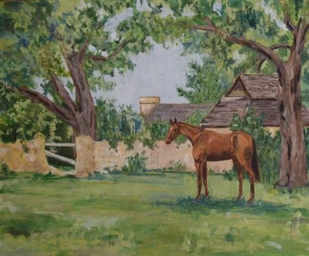 | Oil on canvas, one oil on canvasboard, two oil on masonite and two gouache on paper | |