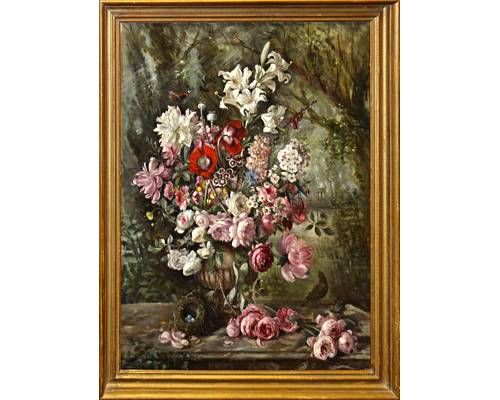 Still life with summer flowers in an urn