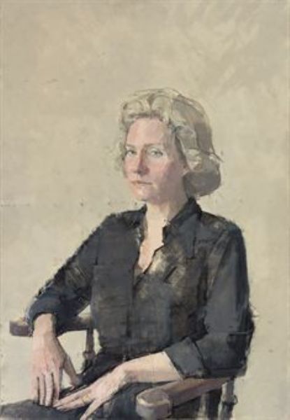 Portrait of a lady, half-length, seated in a charcoal shirt