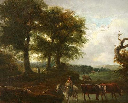Cattle and Drover at the Edge of a Wood