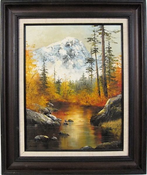 | depicting a mountain landscape in autumn with a river in the foreground | |
