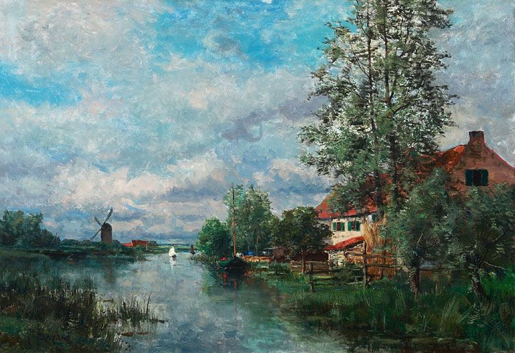 Rivierlandschap met molen non précisé