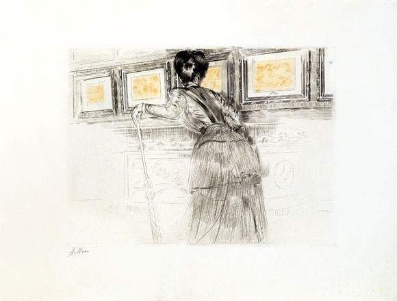 DEVANT LES WATTEAU DU LOUVRE, VERS 1895