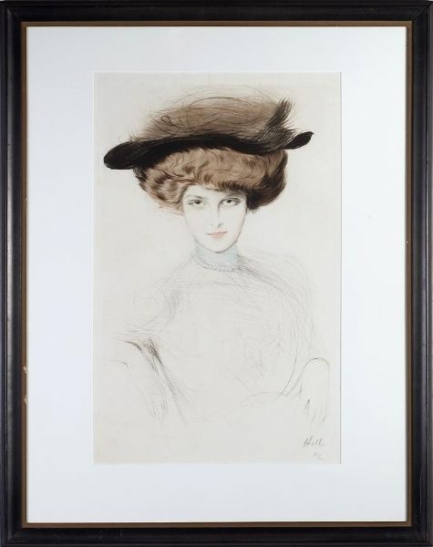 YOUNG WOMAN WITH AUBURN HAIR IN A BLACK HAT