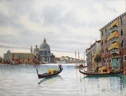 VENISE, GONDOLE À L'ENTRÉE DU GRAND CANAL