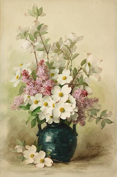 Lilacs and Dogwood in a Blue Vase