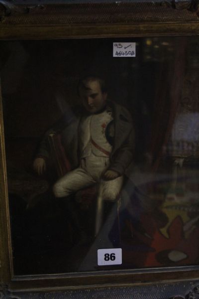 Portrait of the Emperor Napoleon wearing a grey coat and seated in a chair