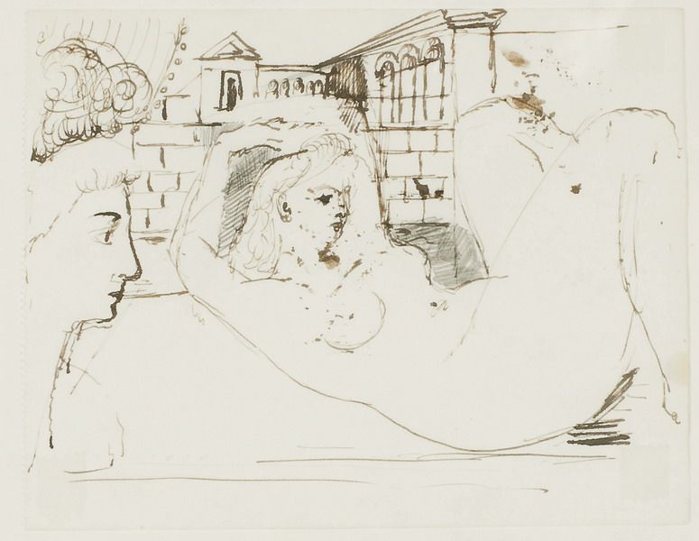 FEMME NUE COUCHÉE DEVANT UN TEMPLE