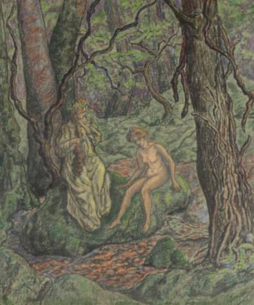 Après le bain ou deux femmes à leur toilette dans la forêt