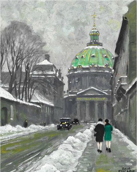 | A winter day on Frederiksgade with Marmorkirken (the Marble Church) in the background | |