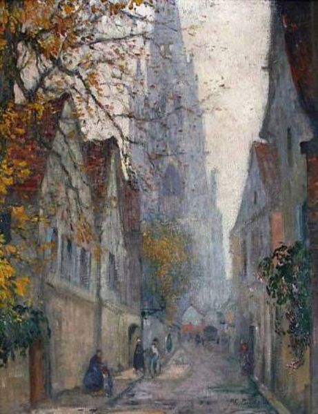 RUE ANIMÉE AU CLOCHER EN AUTOMNE