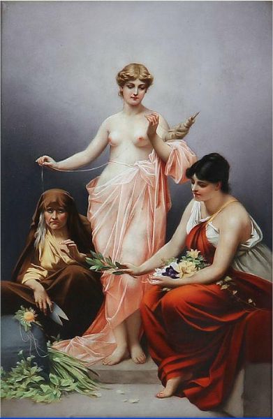 | Porcelain plaque with the three Goddesses of faith, Lachesis, Clotho and Atropos | |