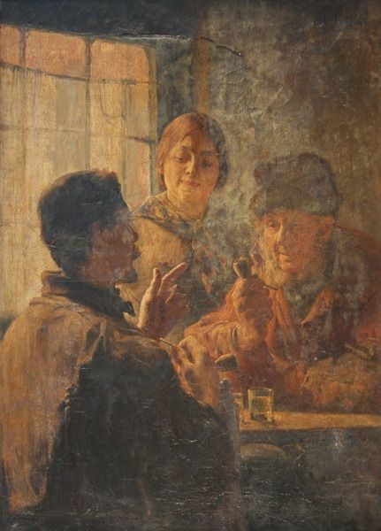 Tavern Interior with Three Figures in Conversation around a Table