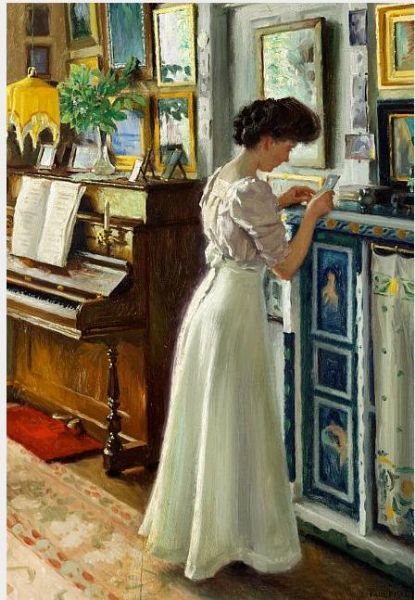 The artist's wife Dagny in the living room