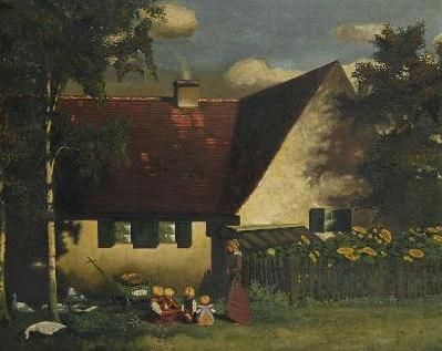 Kopie nach Kinder beim Picknick hinter dem Bauernhaus