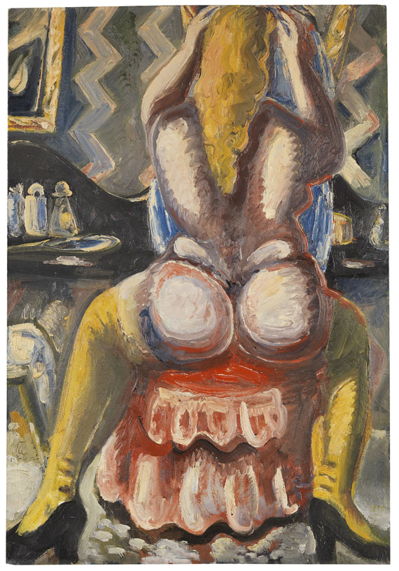 Akt auf rotem Sessel. Rückenakt auf rotem Sessel