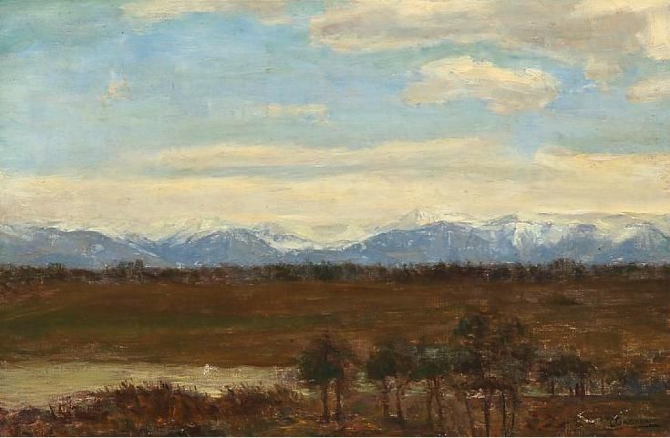 Landscape with mountains in the background.