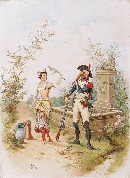 MILITAIRE ET JEUNE FILLE À LA FONTAINE