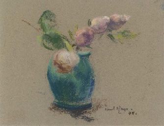 | Still life with pink roses in a blue vase; and Study of red roses | |