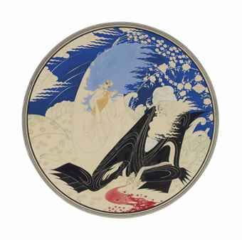 | Pencil Watercolour and gouache, heightened with gold, on paper, circular | |