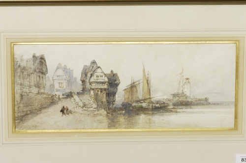 | Continental Harbour Scene with Fishing Boats Anchored beside a Quay | |