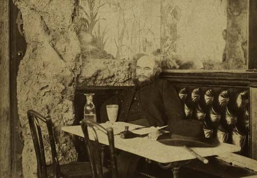 Portrait of Paul Verlaine sitting in Café Procopo.