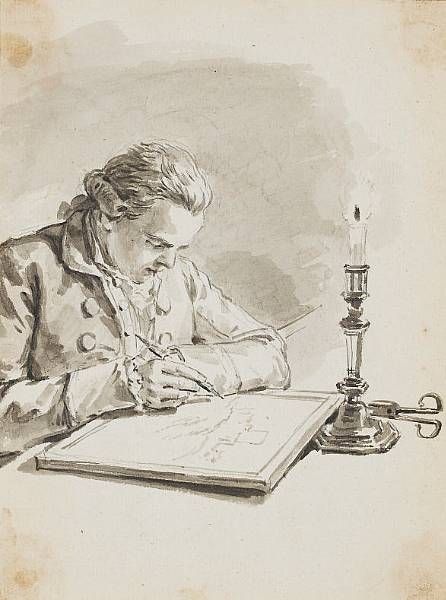 A gentleman sketching by candlelight