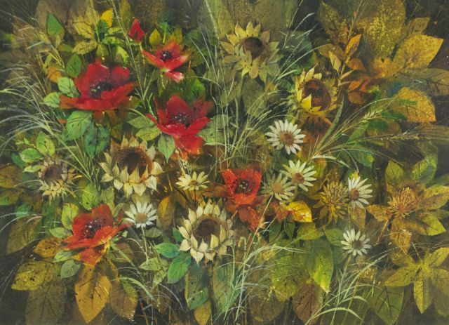 Red Poppies, Daisies and Sunflowers,